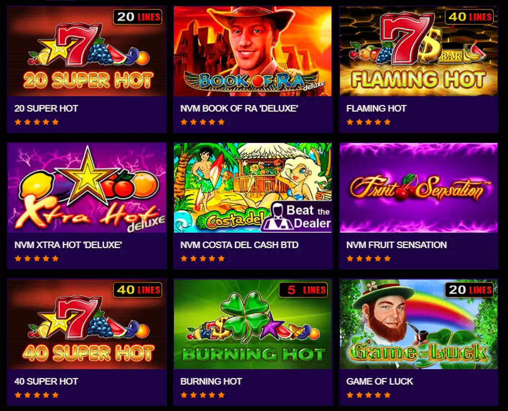 В игровой коллекции — множество вариантов как классических игр, так и самых последних релизов. Поэтому даже те, кому сложно угодить, найдут здесь развлечение по душе. Игрокам также доступны рулетки и видеослоты с большим количеством линий выплат, уникальными символами и другими особенностями. На платформе представлены игры самых популярных разработчиков, таких как Amatic, Pragmatic Play, Belatra и др.
